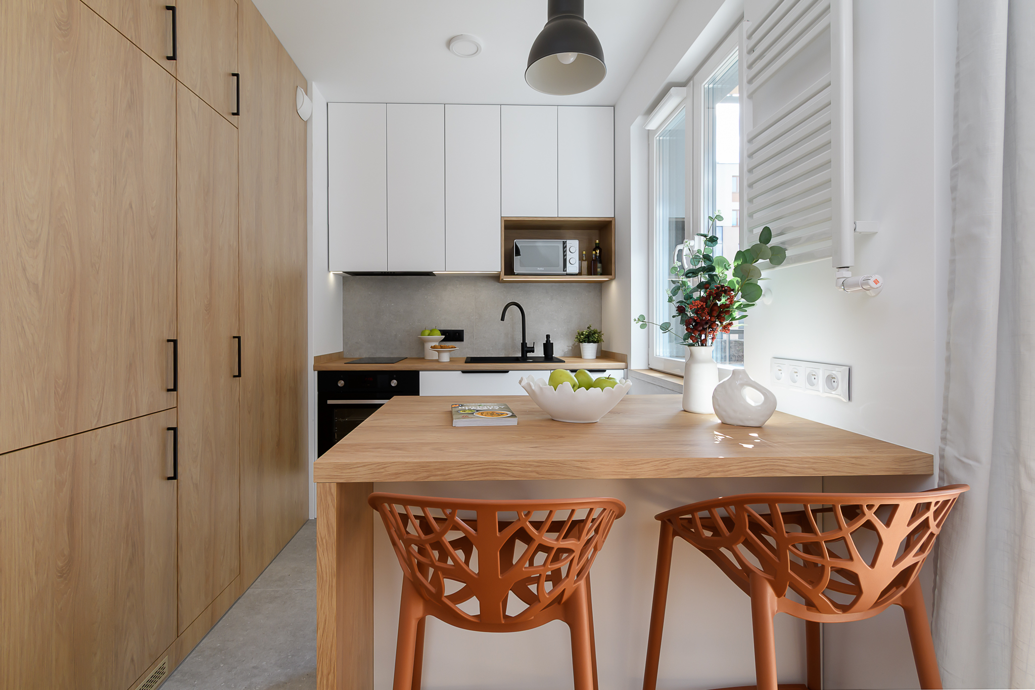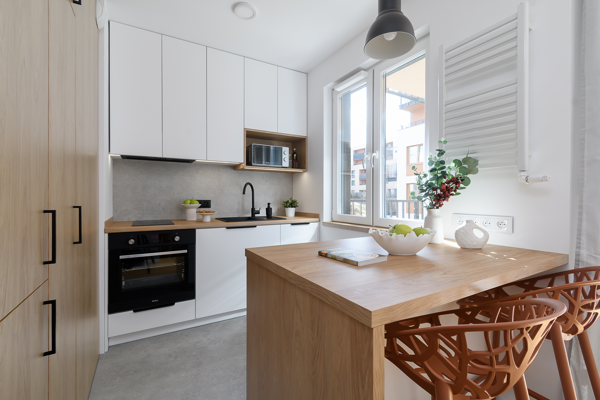 Kuchnia: nowoczesna zabudowa z oknem, pełne wyposażenie AGD, ergonomiczny układ