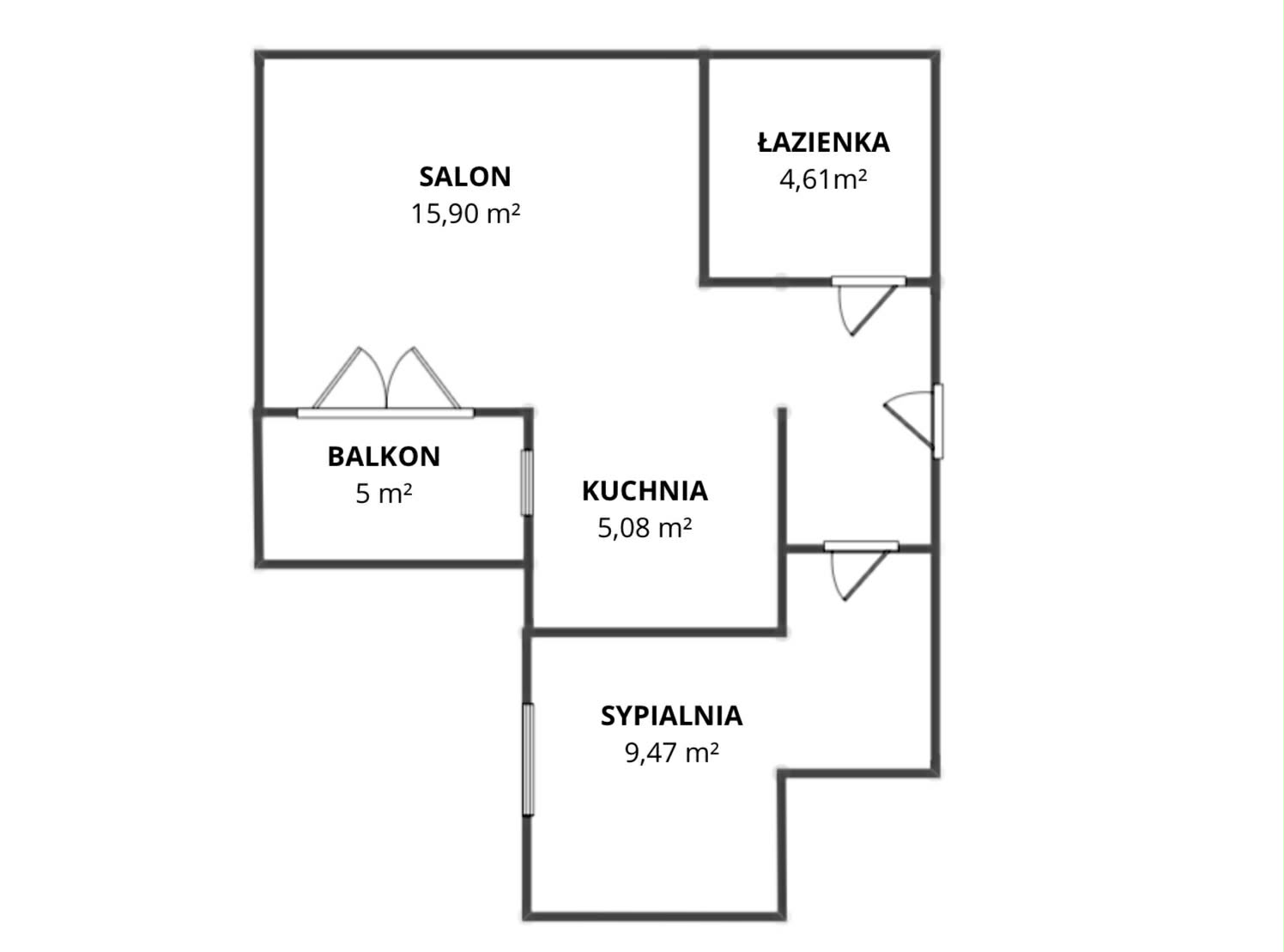 Układ pomieszczeń: salon z aneksem kuchennym, sypialnia, łazienka, przedpokój, balkon,